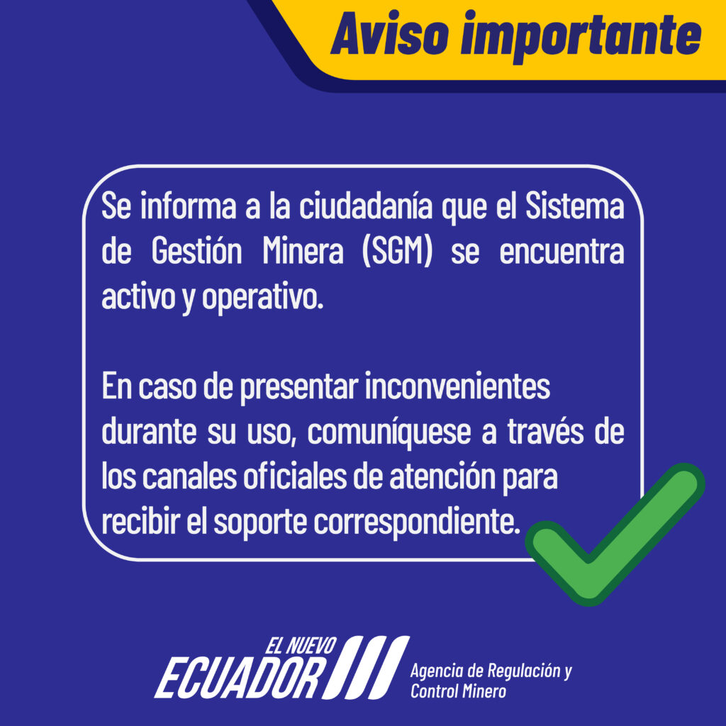 | ARCOM-ARCOM-2025-0029-R | 8 – julio – 2025 | Apertura gradual del Catastro Minero Nacional que Administra la Agencia de Regulación y Control Minero – ARCOM, para no metálicos, bajo el régimen de pequeña minería |